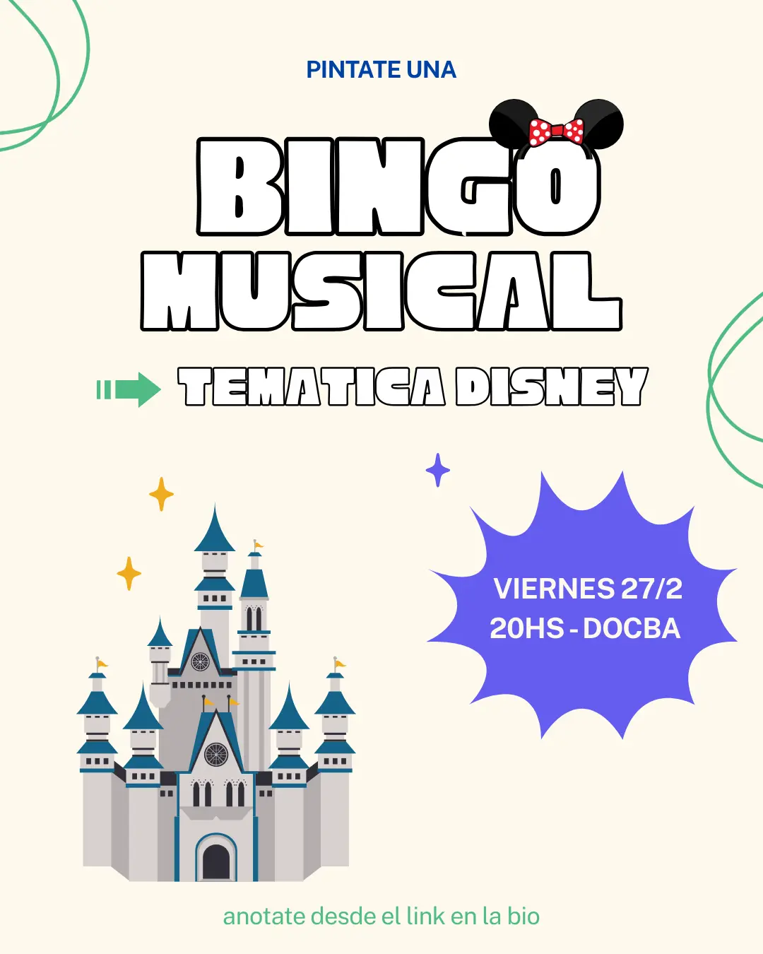 Vení a jugar al BINGO MUSICAL Disney & Pixar, donde las canciones más icónicas de las pelis que nos marcaron van a ser las protagonistas. 🏰🎤