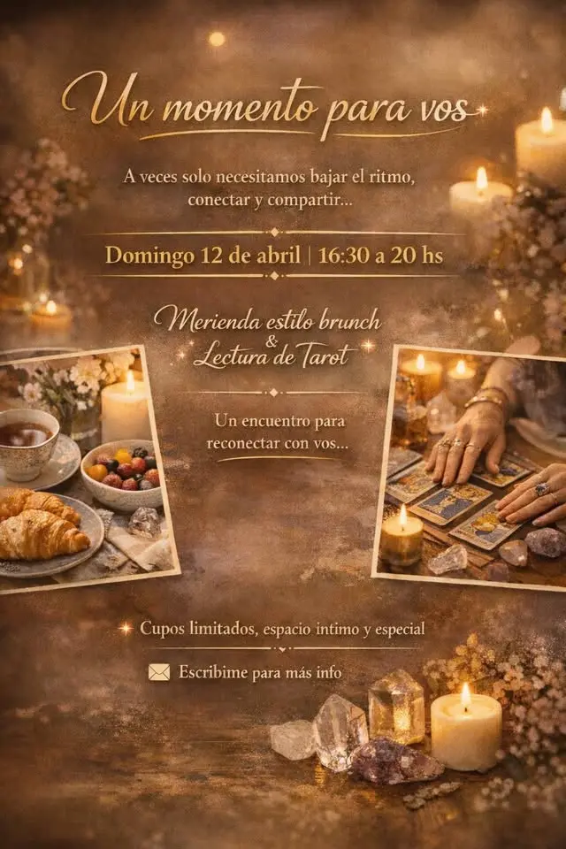 Durante la tarde disfrutaremos de una merienda compartida, un espacio relajado para conversar y conocernos, y además cada participante recibirá una consulta breve con las cartas del tarot, junto con un mensaje del oráculo que puede aportar claridad o inspiración para este momento de tu vida.