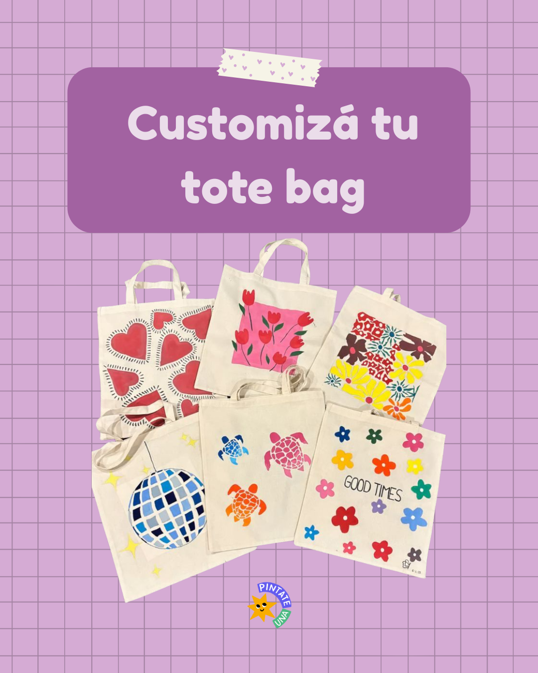 En este encuentro vas a intervenir tu propia tote bag, pintándola, bordándola y customizándola con telas, parches, frases y detalles únicos para que quede 100% a tu estilo. 👜✨